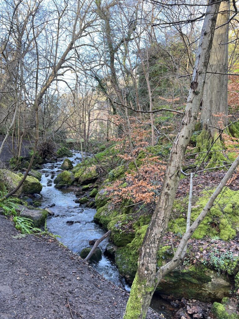 Another option is to continue past Scout Bridge and making your way up the hill from the Community Wood at the east end of the Hermitage of Braid, but we’ve never gone that way before.