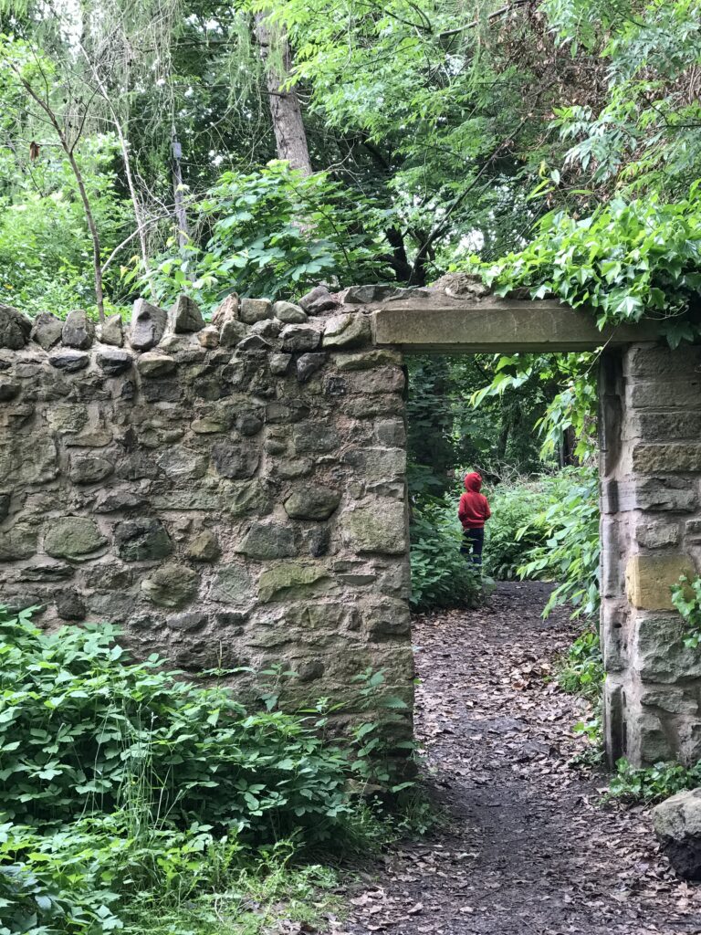 Start on the paved path along the south side of the burn and turn right just before Hermitage House. Follow the dirt path along the burn to Scout Bridge — a large wooden bridge you can’t miss. (Tip: pick up some sticks for Pooh Sticks at one of the bridges along the way.)