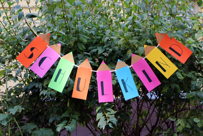 I had seen an idea in one of our local shops here in Berlin that sells crafts materials, for some pencil bunting which was perfect for a school enrolment party, so I decided to recreate it. It was super easy and super quick to put together the night before!