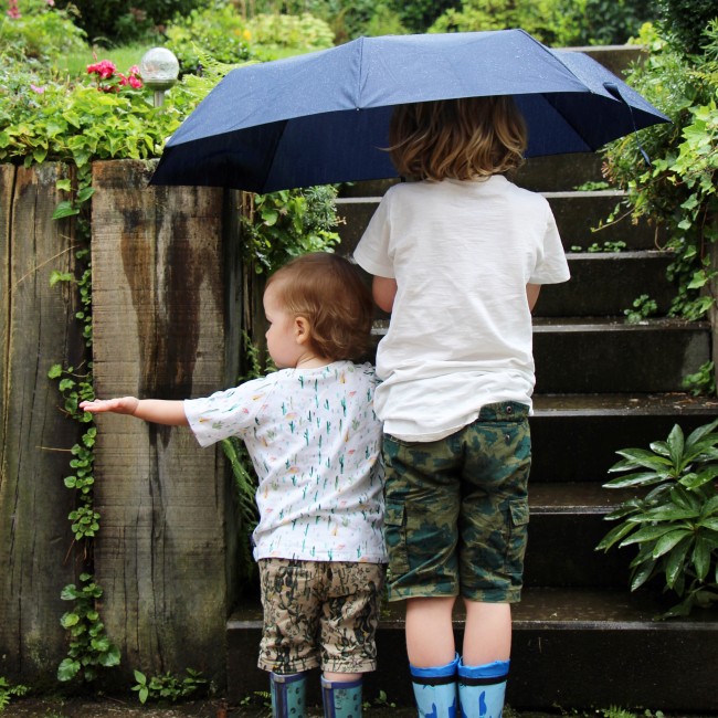 On day two of our holiday it started raining (and didn’t stop for the next couple of days!) but that didn’t stop these two heading in to the garden.