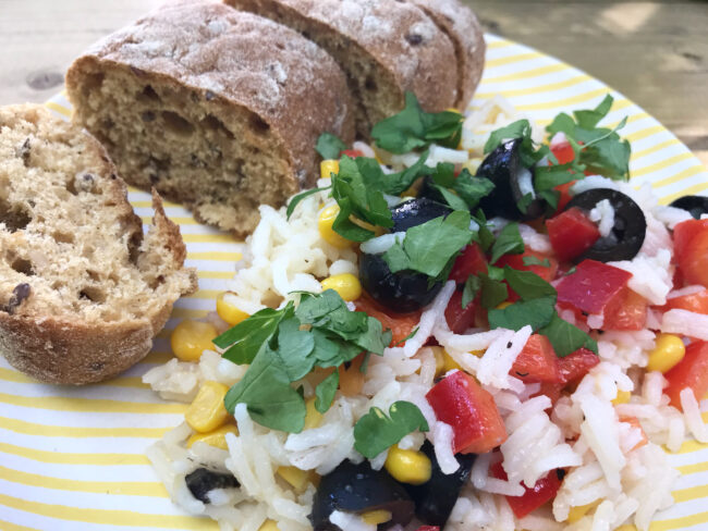 Planning a picnic this summer? This rice salad is a perfect dish to eat at a picnic, alongside boiled eggs, rustic bread and chunks of cheese. Just pack it up in a tupper-box, and don’t forget to bring forks to eat it with. Also makes a great side dish if you are having a BBQ closer to home.