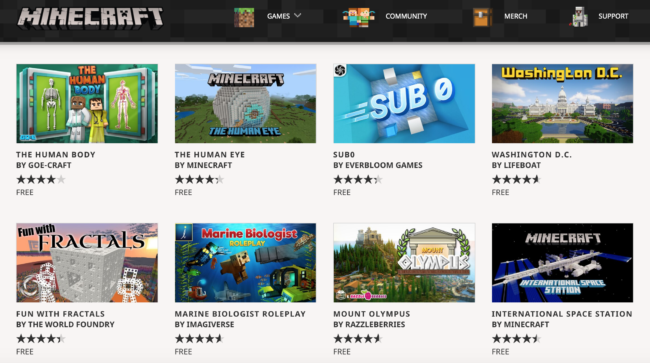 Minecraft – Yes, it’s a computer game, but it actually encourages creativity, problem solving, spacial awareness and geometry skills. In the Minecraft Education Collection you can also download free pre-built environments such as the International Space Station, Mount Olympus, or the city of Washington DC, which the kids can then explore and continue to build and adapt.