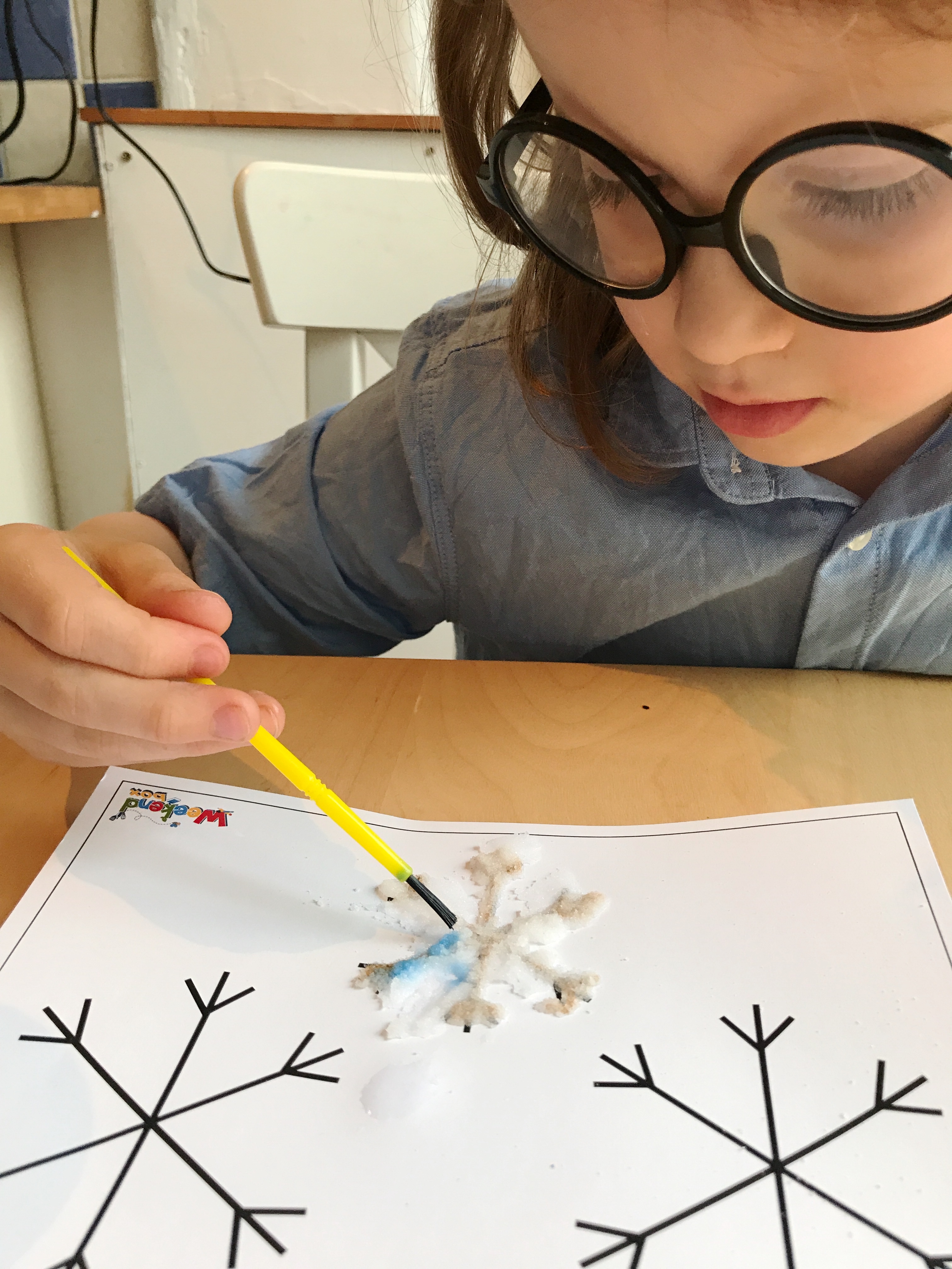 The final activity that were tried at the weekend, after a short break, was making salt snowflakes with Sammy Squirrel, which involved a glitter glue pen and water colour paints. There was a template included, though you could also free-hand your own snowflakes.