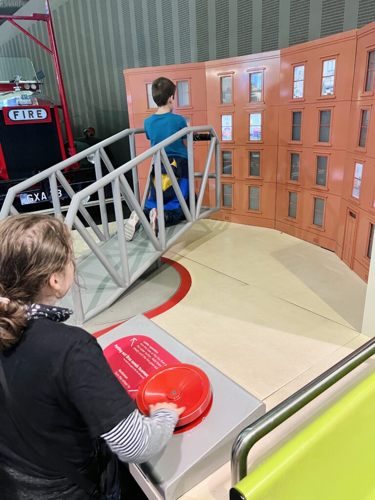 As well as the real deal, there’s also some model and replica vehicles for children to play in, including a fire engine, an old locomotive, and a motorbike and car combo. One of the boy’s favourite activities, was a fire fighting exhibit, where one person is on the ladder putting out the fire, and the other has to move the ladder in to the right position.