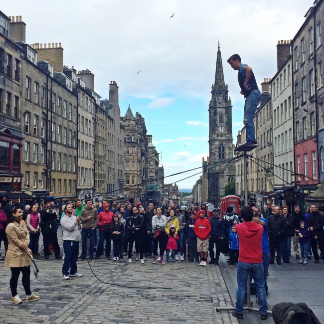 A walk up the Royal Mile before dinner. We see the castle, buy a kilt for the toddler, and watch some street performers.