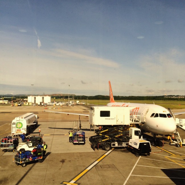 Landed in Edinburgh about 50 minutes late. As I chase around the luggage carousel with a toddler on my hip, then distribute toddler and luggage to their places in one swift move, a lady calls out “Well done, mum!” Feel like punching the air in triumph.